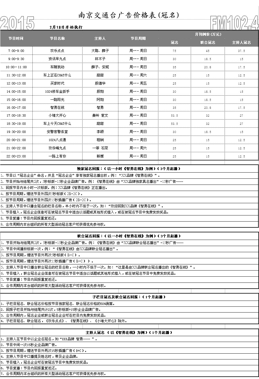 > 【冠名】交通台广告价格表